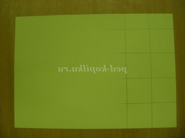6. Беремо ксероксную папір жовтого кольору, лінійку, олівець і расчерчиваем вертикально смуги шириною 5 см.