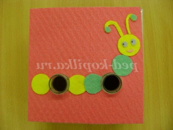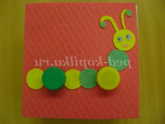 Хід гри: спочатку вихователь пропонує дітям розглянути гусеницю, у якої вже є частині тулуба (це кружечки різного кольору).