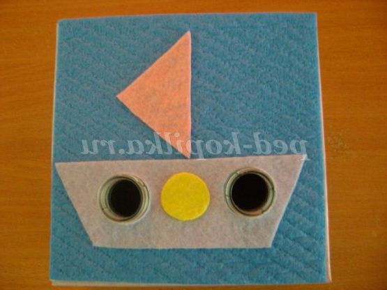 Хід гри: вихователь пропонує дитині розглянути готову картинку, наприклад, «Кораблик», де на борту серед жовтих гуртків є гурток зеленого кольору.