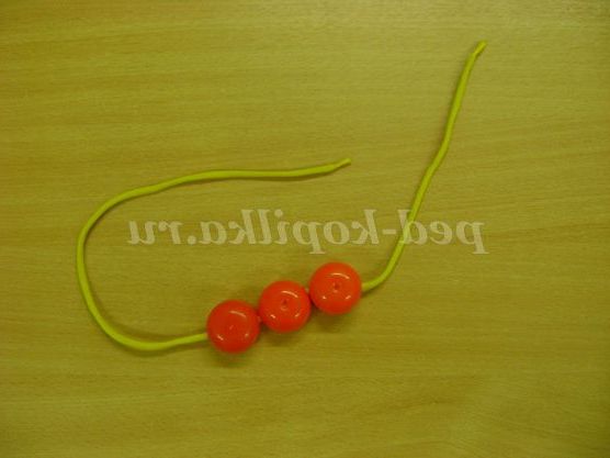 Хід гри: вихователь просить дитину одягти на шнурок, наприклад, намистинки червоного кольору.