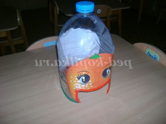 Посібник зробила з пластикової пляшки, на яку з двох протилежних сторін наклеїла картинки фруктів.
