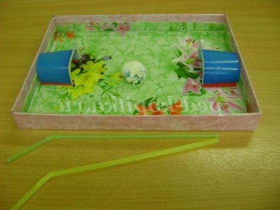 Роль воріт виконують 2-е половинки стаканчики з-під йогурту.