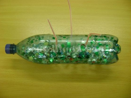 Нам знадобилася пластикова пляшка з кришкою, дрібно нарізана фольга, пластикові трубочки.