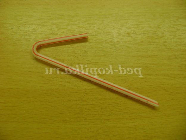 Трубочку-печатку заздалегідь готує педагог. Щоб зробити таку печатку, треба взяти трубочку від соку, відзначити її потрібної довжини, зайву частину зрізати ножицями. З краю зробити надрізи приблизно 1см, відігнути надрізані краю. З вигляду буде нагадувати сніжинку.