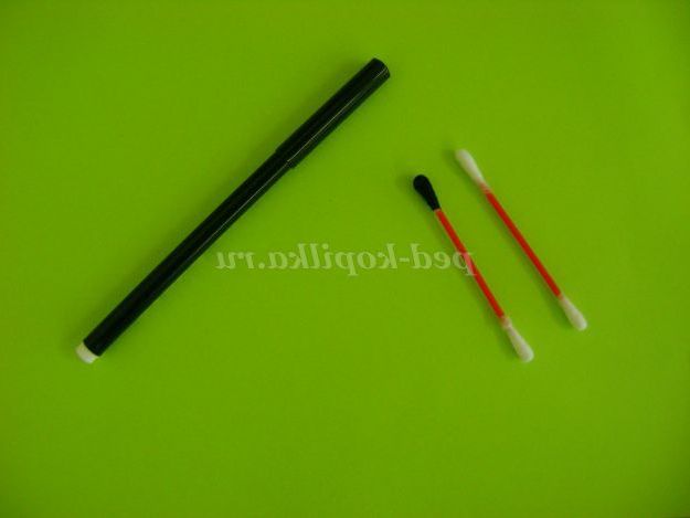Візьмемо фломастер чорного кольору і розфарбуємо верхню частину ватної палички.