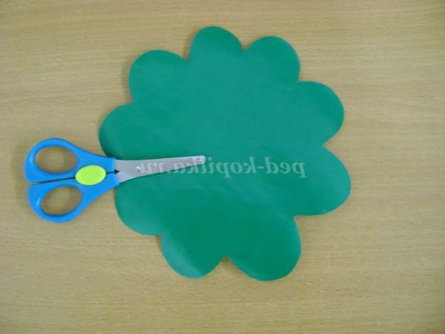 2.ЗА допомогою шаблонів вирізаємо квітка з кольоровою клейкою папери. У нас він буде зеленого кольору.