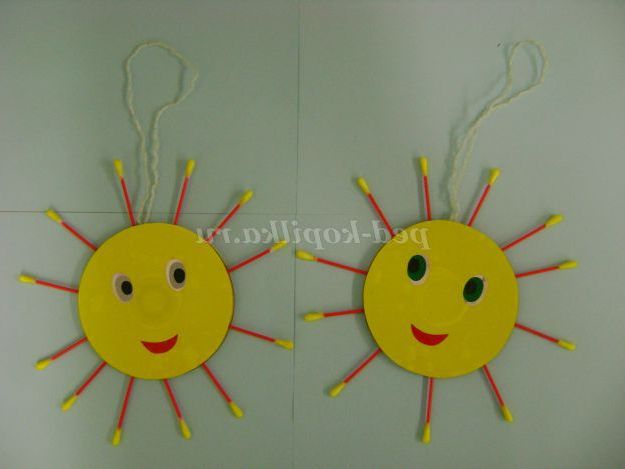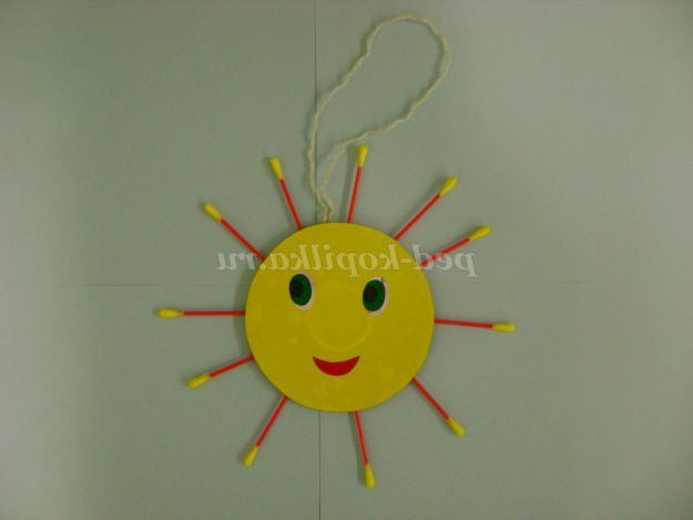 Кінці ватних паличок можна розфарбувати жовтим фломастером. Кількість паличок для промінчиків можна взяти будь-яку кількість. В моєму випадку їх 11.