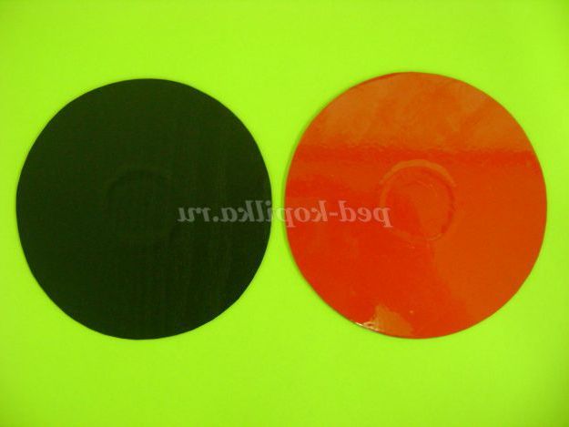На один диск наклеїв коло червоного кольору, а на другий - чорного кольору.