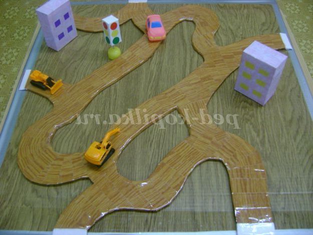 Хід гри: на початку гри розставити дорожні знаки, світлофор, позначити місце пішохідного переходу, запропонувати дітям іграшки різних видів автотранспорту. Педагог пропонує дітям грати самостійно. Можна створювати проблемні ситуації на дорозі, давши дітям можливість самостійно їх вирішувати.