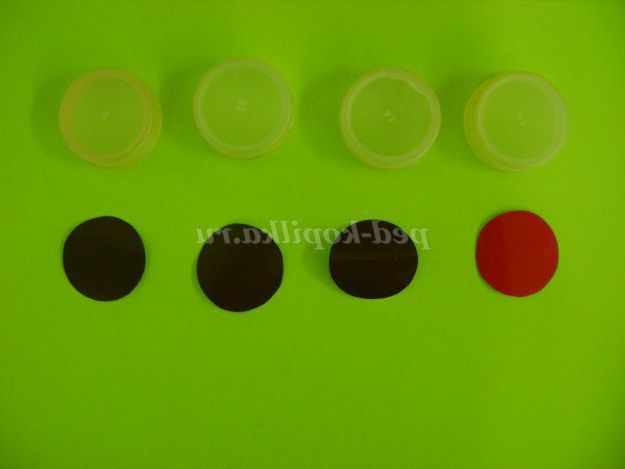 9. Приклеїли кола до верхніх поверхонь кришок.