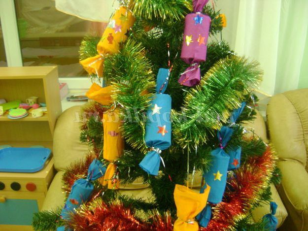 Опис: матеріал може бути корисний педагогам та батькам. Захід рекомендується провести напередодні новорічного ранку спільно з дітьми молодшого або середнього дошкільного віку та батьками. Можна провести у формі розваги або дозвілля. Завдання в ході заходи передбачають спільне з батьками виготовлення ялинкових іграшок-цукерочок участь у конкурсах.