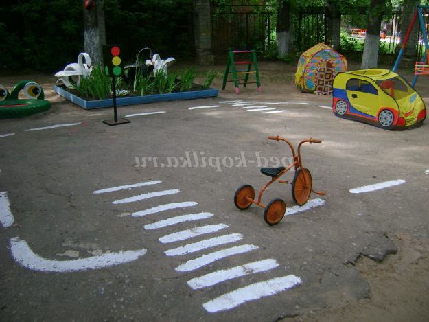 Для навчання ПДР на асфальті зробили розмітку, світлофор з фанери і самоклеючої плівки.