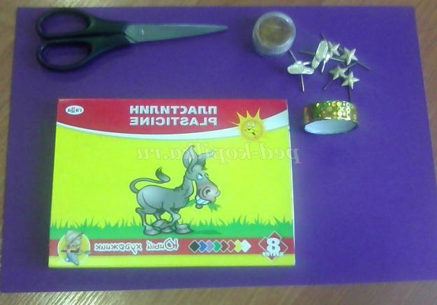 Матеріал: кольоровий картон, вузький золотий скотч, блискітки "золото", відзнаки роду військ, пластилін, ножиці.