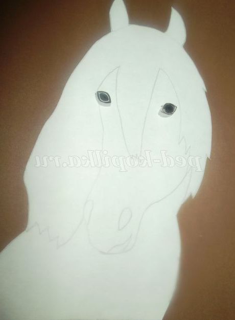 Починаємо обклеювати готовими заготовками голову, вуха коні, намагаючись деталі, приклеювати як можна ближче один до одного.