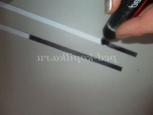 Починаємо з виготовлення очей коня. Для цього необхідно смужки білого паперу пофарбувати до середини чорним маркером з обох сторін.