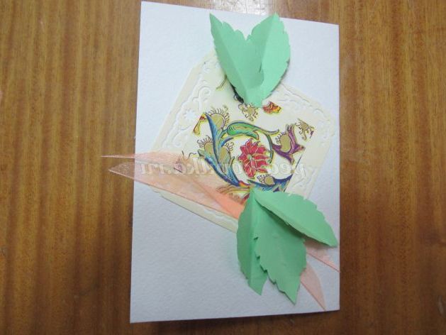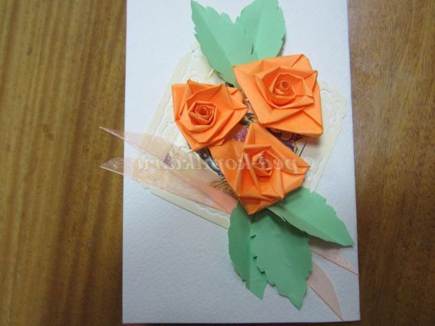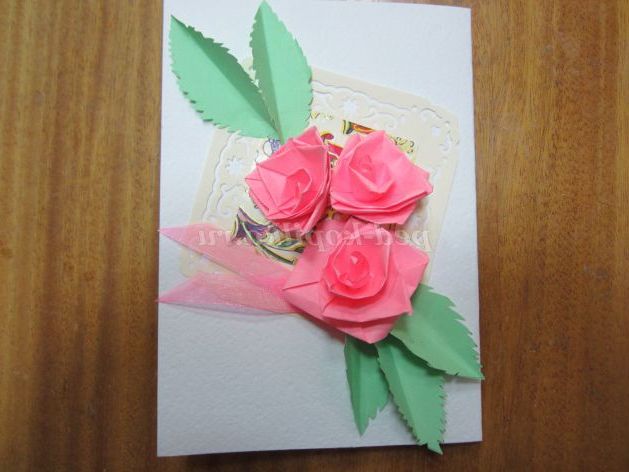 Тепер приклеюємо троянди до листівці. Листівка для мами готова!