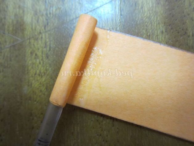 Згинаємо смужку під кутом 90 градусів у напрямку до себе і закручуємо. Виток закріплюємо клеєм.