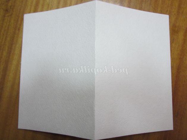 Розрізаємо стрічку навпіл і приклеюємо до основи листівки.