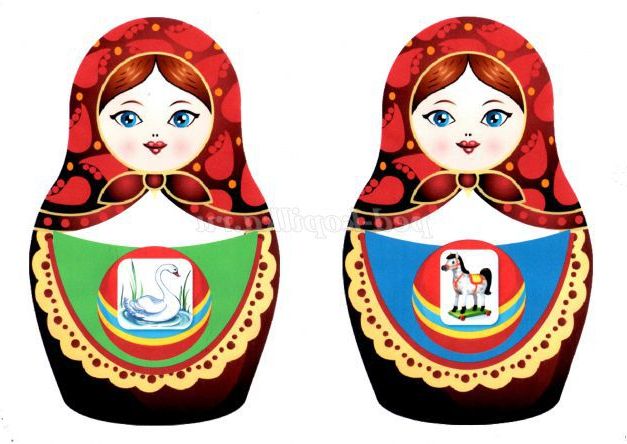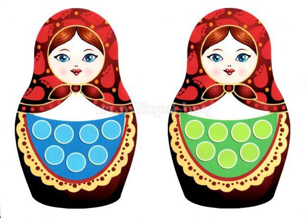 - Сьогодні ми будемо прикрашати фартушки у матрьошок Даші і Діни.