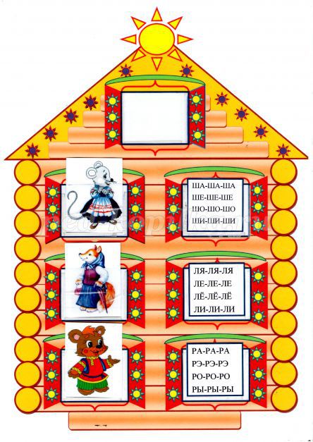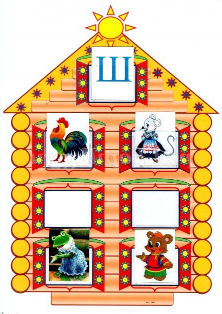 Педагог ставить у верхнє віконце букву, що позначає звук [ш] (або інший закріплюється звук) і пропонує дитині знайти картинки з цим звуком.