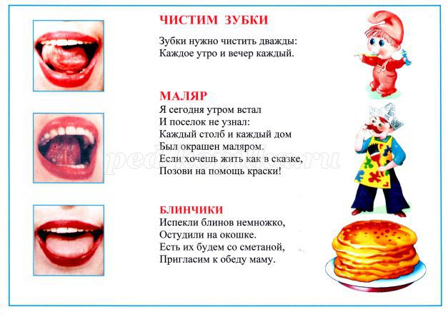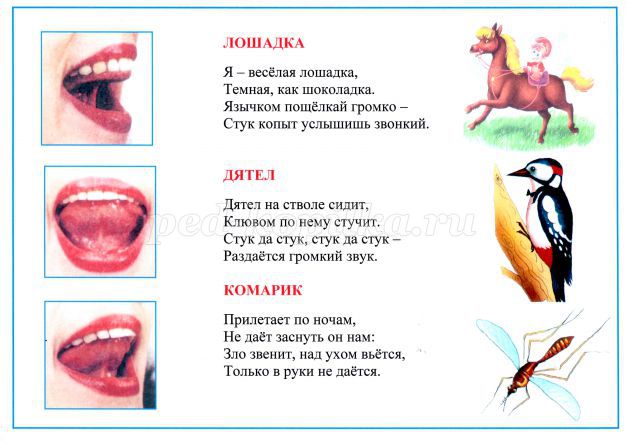 Мета: зміцнювати м'язи кінчика мови, виробляти підйом мови вгору і вміння робити кінчик язика напруженим.