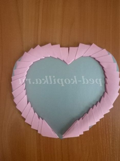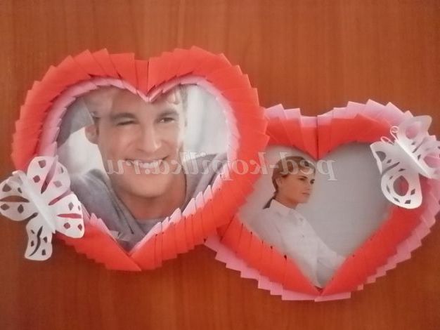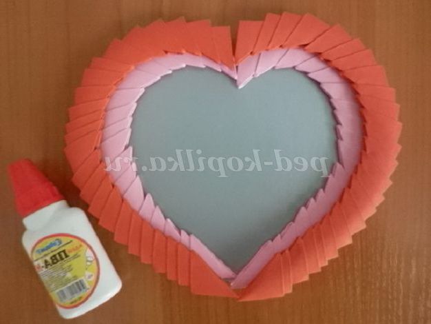 14. 15. Накладаємо «велике» червоне серце на рожеве « маленьке».ЗА допомогою клею ПВА приклеюємо ці серця один до одного. Рамка майже готова!