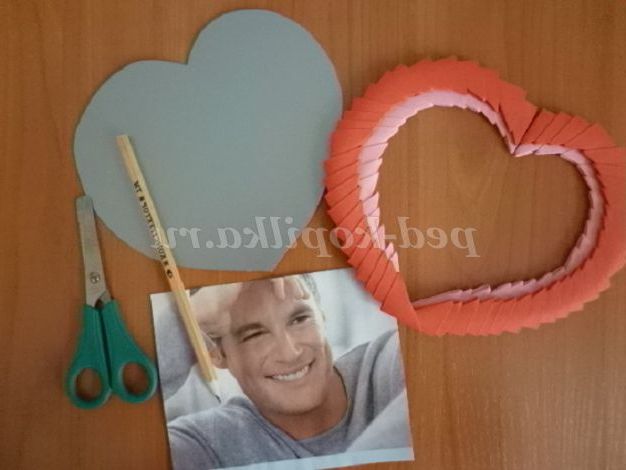 16. 17.Переходим до роботи з фотографією! На фотографію накладаємо серця і відзначаємо олівцем (по зовнішніх краях рамки), де слід відрізати куточки! Ось тепер можна приклеїти картон до сердець так, щоб фотографія з легкістю вставлялася з зовнішньої сторони рамки!