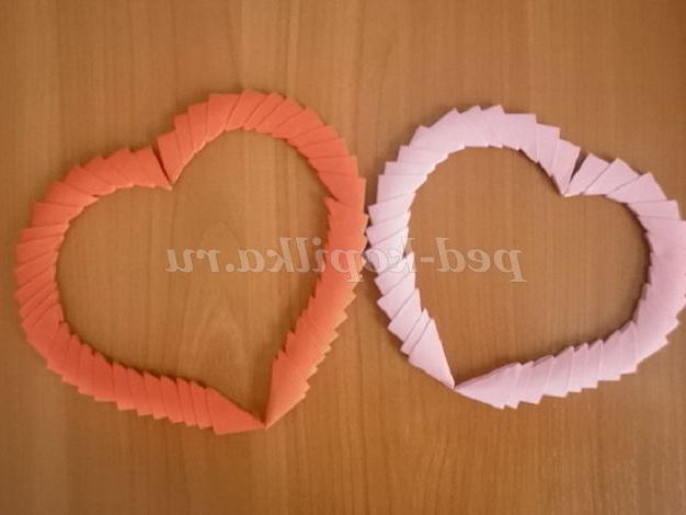 11. З отриманих заготовок формуємо 2 серця: червоного і рожевого кольору.