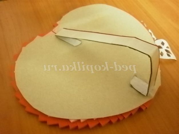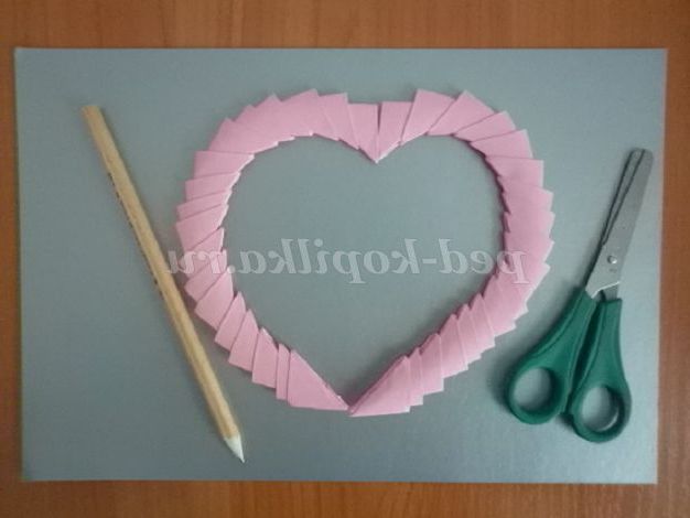 12. 13. Далі для роботи нам знадобиться картон, з якого ми будемо вирізати серце. Серце промальовуємо по зовнішньому контуру рожевого серця і потім вирізаємо його.