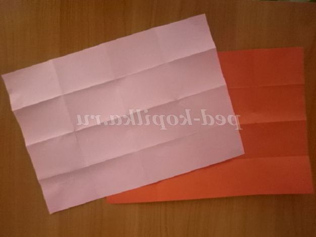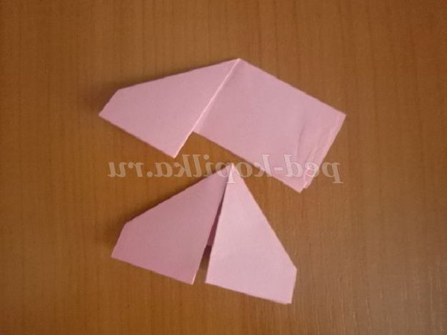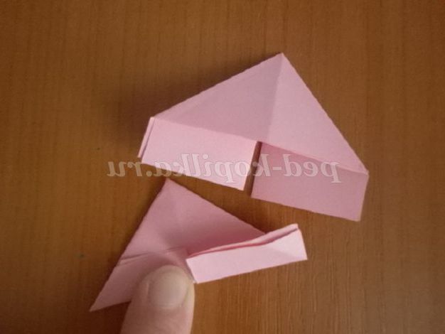 7. 8. Заправте куточки всередину. Складіть отриманий модуль по лінії середини. Таким чином, у нас вийшло 48 червоних і 36 рожевих модулів.