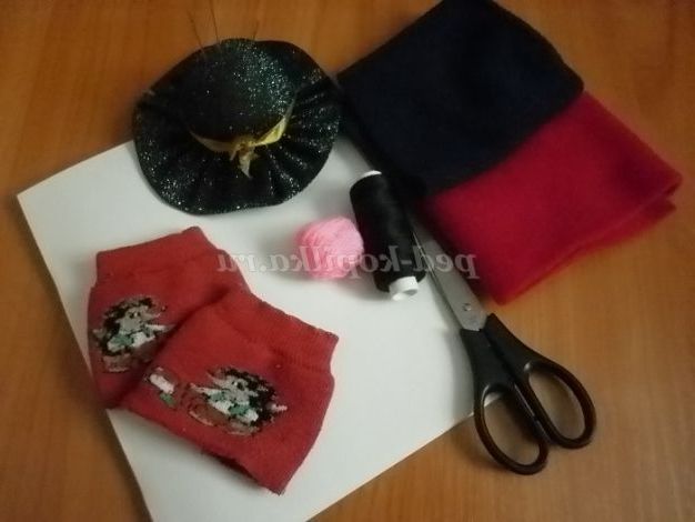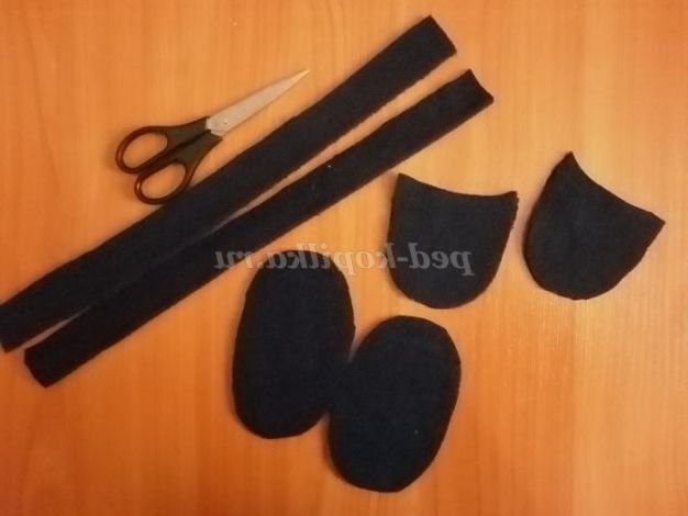 Матеріал: гумки від шкарпеток (пара); ножиці; фетр; картон для шаблонів; голка; - нитки - чорна і рожева.