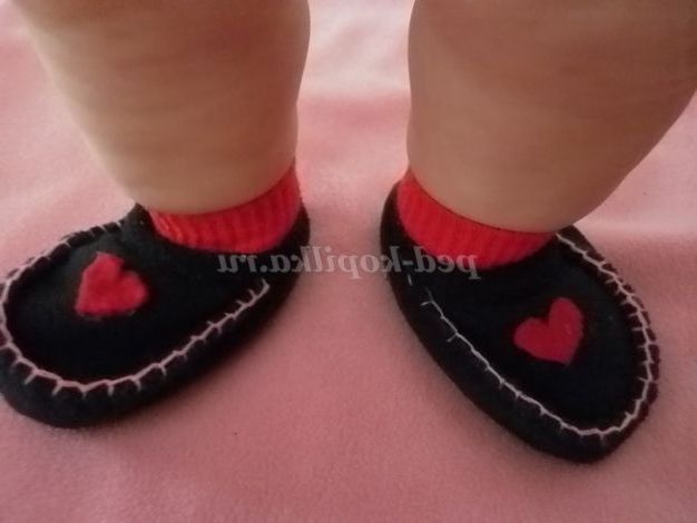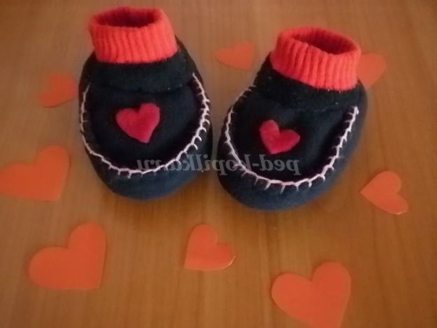 13. Готові шкарпетки - пінетки вивертаємо і декоруємо сердечками з червоного фетру. Ось такі шкарпетки - пінетки вийшли на радість вам і вашому малюкові!