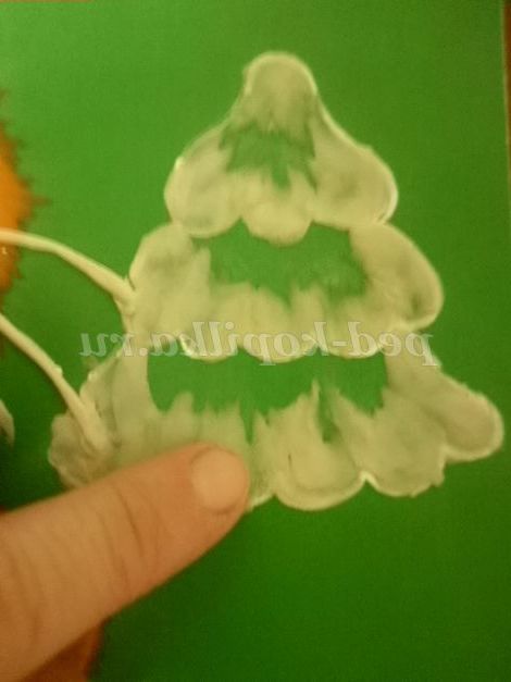 10. Ялинки вийшли білі, але на них не вистачає снігу! Найкраще передати засніжений наряд нам допоможе пластилін білого кольору, який ми також примазываем по краях ялинки.