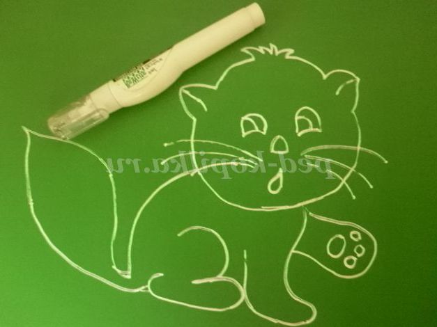 3. За допомогою простого олівця малюємо силует кота, але як бачите на кольоровому тлі його практично не видно!