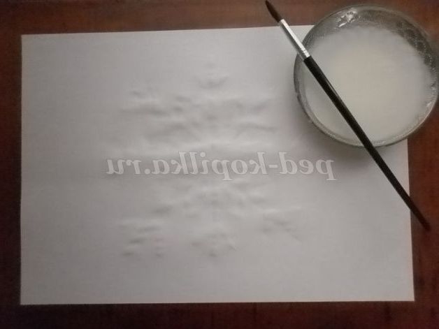 Повільно видавлюємо пасту маленькими горошинками на малюнок, який злегка, майже непомітно намальований простим олівцем. За допомогою пензлика розподіляємо пасту по малюнку, створюючи контури малюнка. Даємо малюнку просохнути!