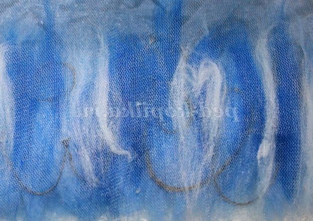6. Трьом без особливих зусиль, до тих пір, поки ворсинки вовни не сваляются, але необхідно контролювати, щоб шерсть не привалялась до сітки, тому її слід періодично знімати.