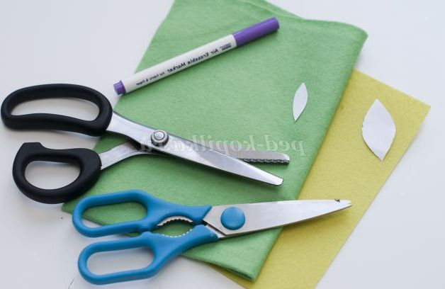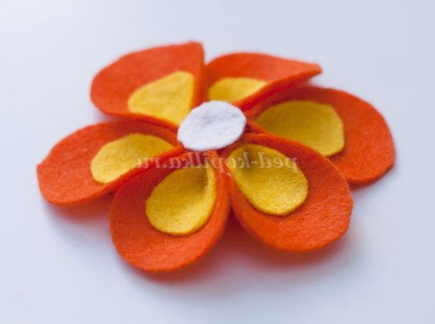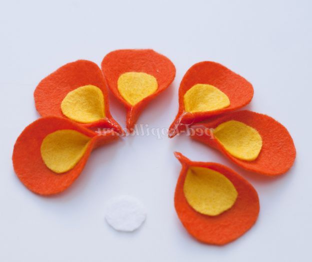 Переходимо до виконання кольорів. Вирізаємо по шаблону з фетру трьох квітів пелюстки і серцевину.