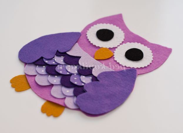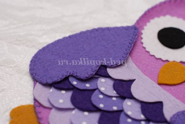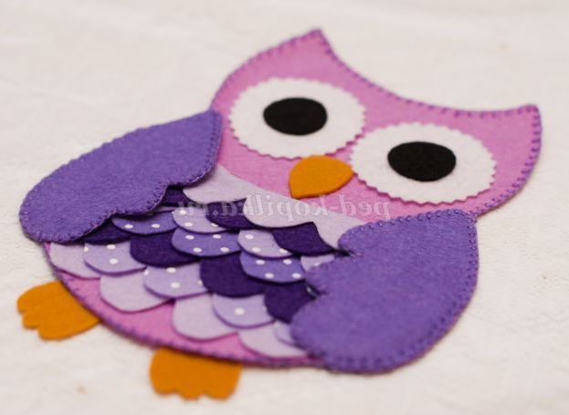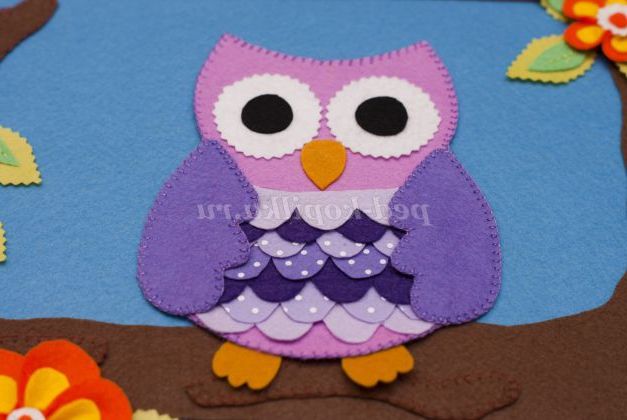 Фетр вважається найзручнішим матеріалом для аплікації з тканини. З фетром дуже зручно працювати, так як він ставиться до нетканим матеріалами, а значить, краю вирізаних фрагментів не обсипаються. Тому працювати з фетром люблять як діти, так і дорослі! В цей раз представляю вам покрокове виконання аплікації «Сова». Такого плану аплікації будуть прекрасним декорування дитячої кімнати або групи дитячого саду.