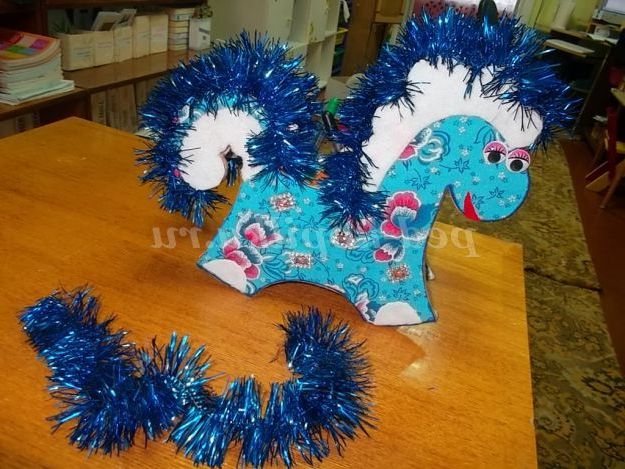 9. Щоб конячка стала ошатною і Новорічної, можна підколоти канцелярськими голочками по краю гриви і хвостика мішуру - святковий вигляд!