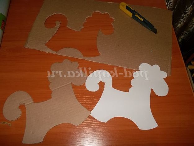 2. Вирізати за шаблоном з картону канцелярським ножем 2 конячки