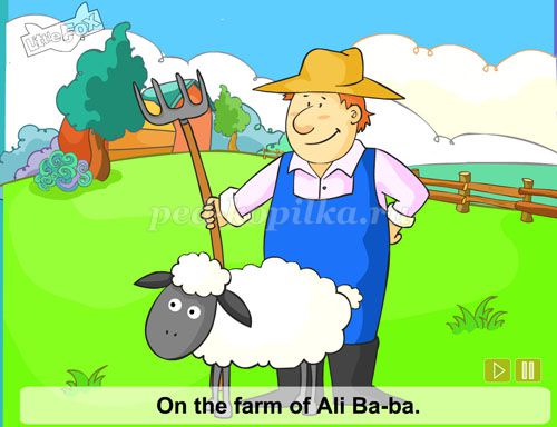 Ми з вами вивчили куплет пісні про ферму давайте проговоримо і заспіваємо разом з нашими героями