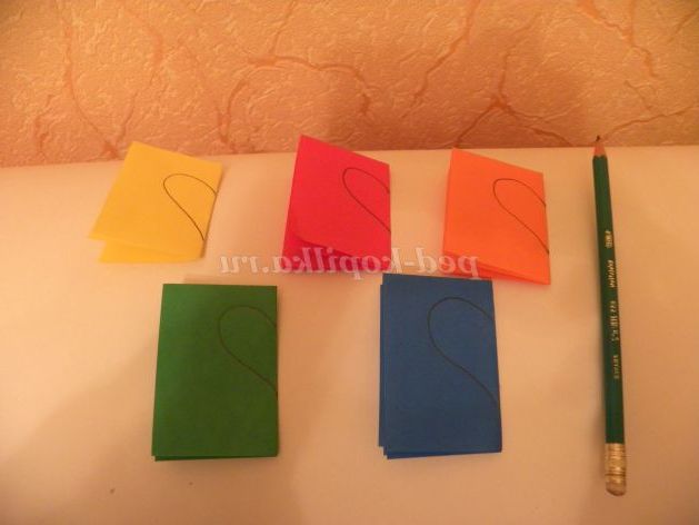 5. На кожній заготовки з кольорового паперу малюємо серце (половинку), потім вирізаємо. З кожної заготовки, виходить по 4 сердечка.
