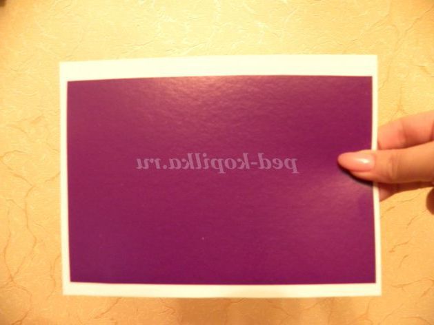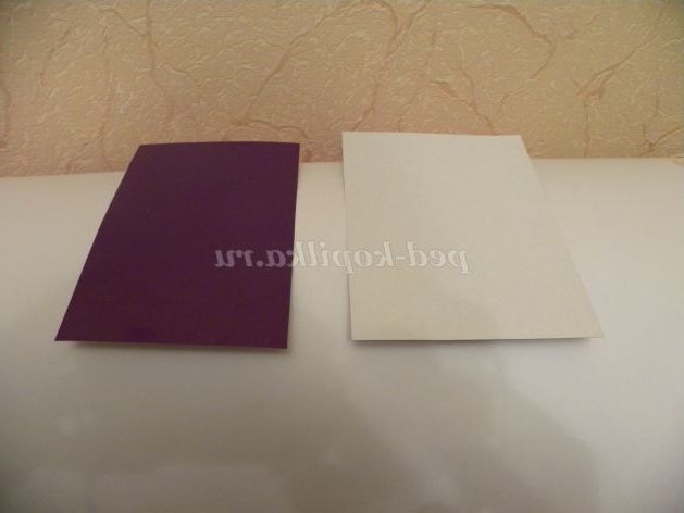 3. З кольорового картону вирізаємо прямокутник на 1 см меншого розміру, ніж наша заготовка прямокутника з білого картону.