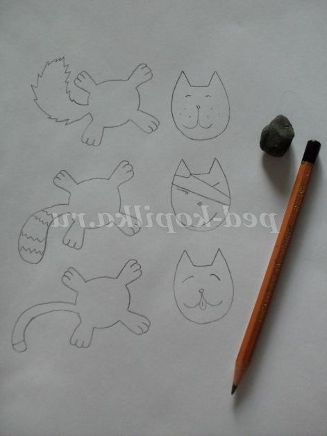 Поки заготовки сохнуть переходимо до створення шаблонів для мордочок і лапок з хвостиками. Ви можете взяти за взірець мої, а можете придумати свої. Дітям я дала тільки буди, а мордочку, характер, хвостик кожен придумував і домальовував сам.