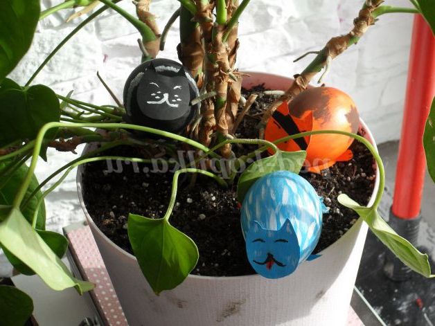 З яєць нескладно виготовити сім'ю веселих котиків: кожен кіт у нас буде зі своїм характером. Один може бути пустуном; інший ласкавим, домашнім котом; третій котик буде фантазійним (наприклад: блакитного кольору, який не характерний в природі для цих тварин).