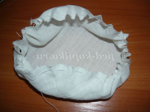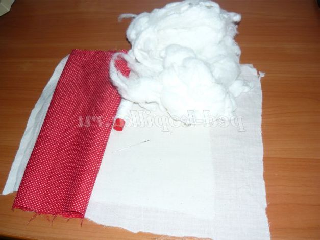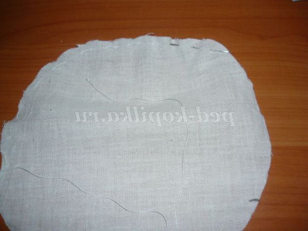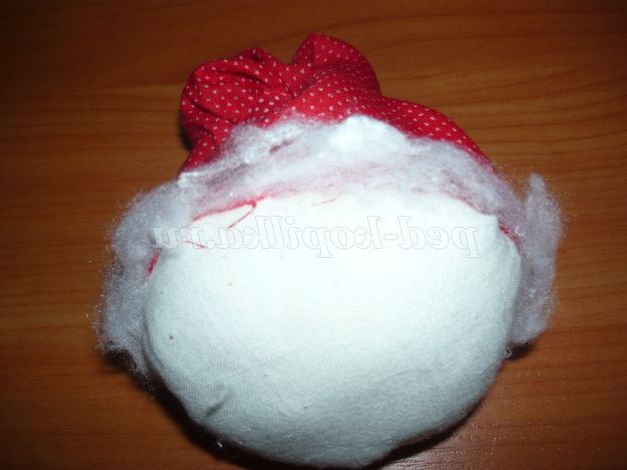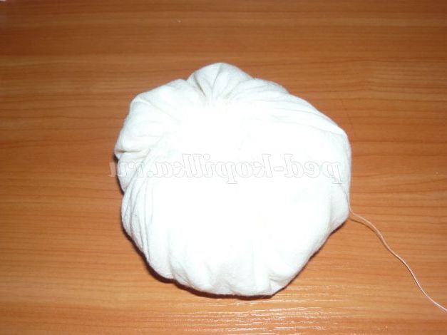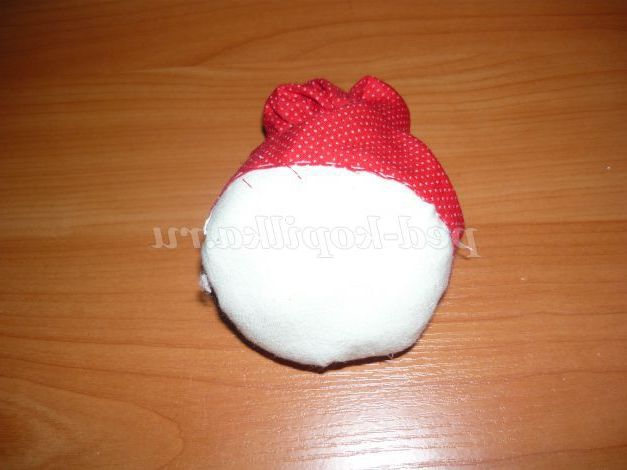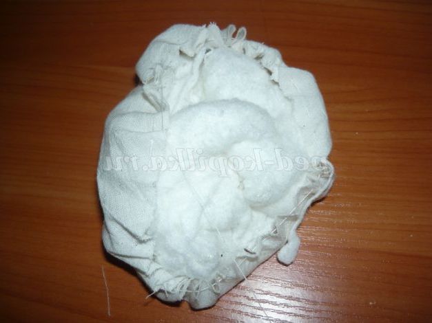 Закладаємо всередину ватку і стягаємо нитку - вийшло тулуб.