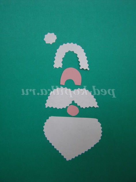 Починаємо наклеювати деталі. Спочатку особа з білою облямівкою, потім борода.