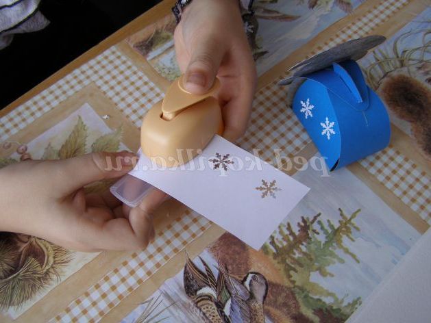 Скринька можна прикрасити сніжинками, скористаємося креативним панчем.