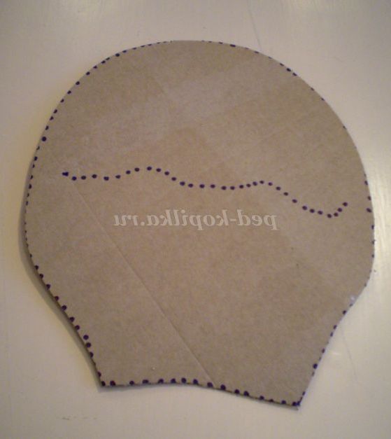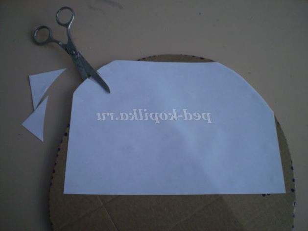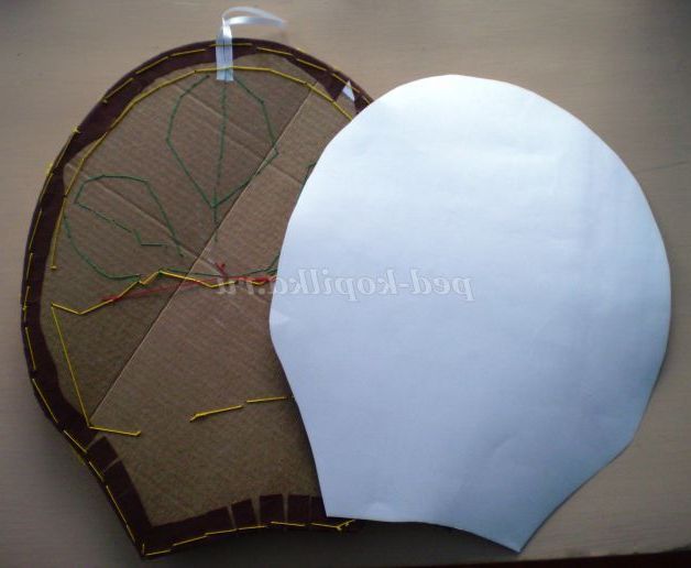 2. Готову кошик накладаємо на коробковий картон, по контуру кошика проколюємо картон, олівцем відзначаємо проколи - точки.