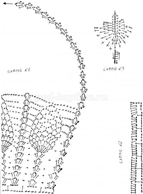 7. В'яжемо квіти і листя за схемами № 2,3, пришиваємо до основи.